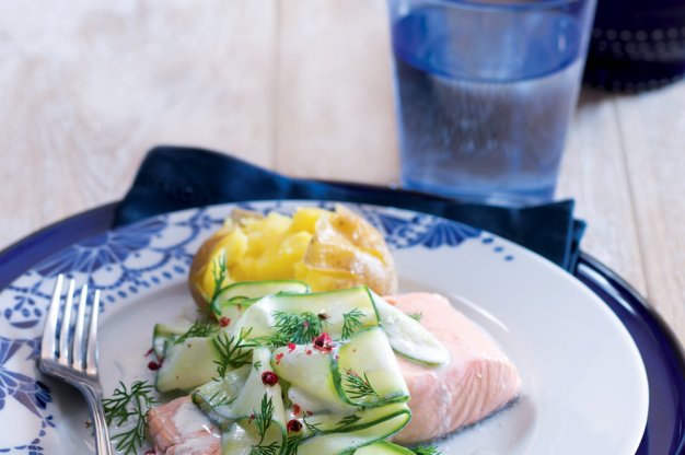 Pošírovaný losos a okurkový salátek s jogurtem